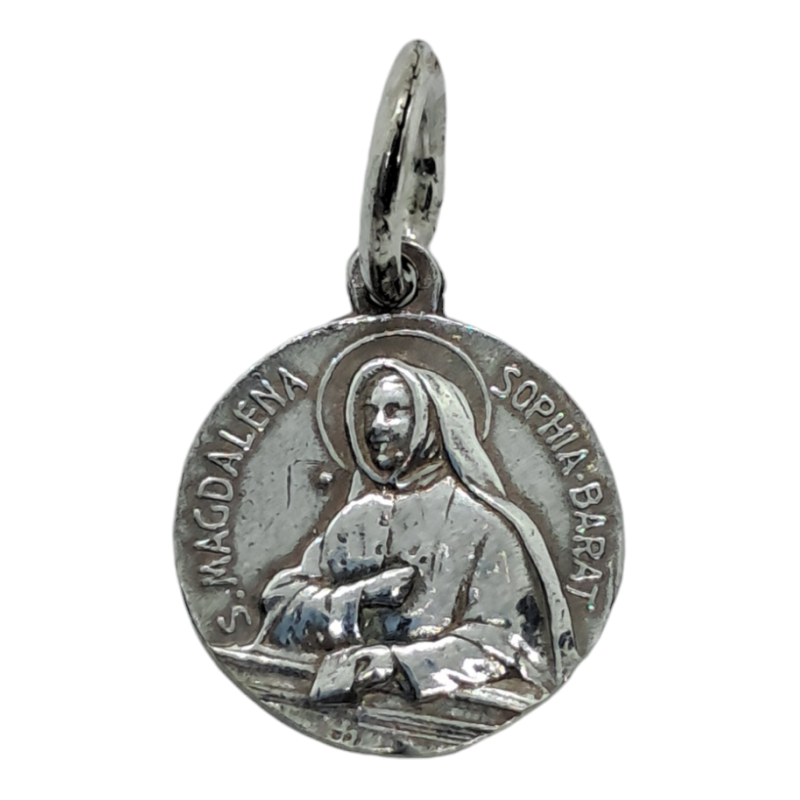 Medalla con imagen de Magdalena en relieve de forma redonda de plata de ley de 925 mls con unas medidas aproximadas de 13 mm. La parte trasera es labrada.