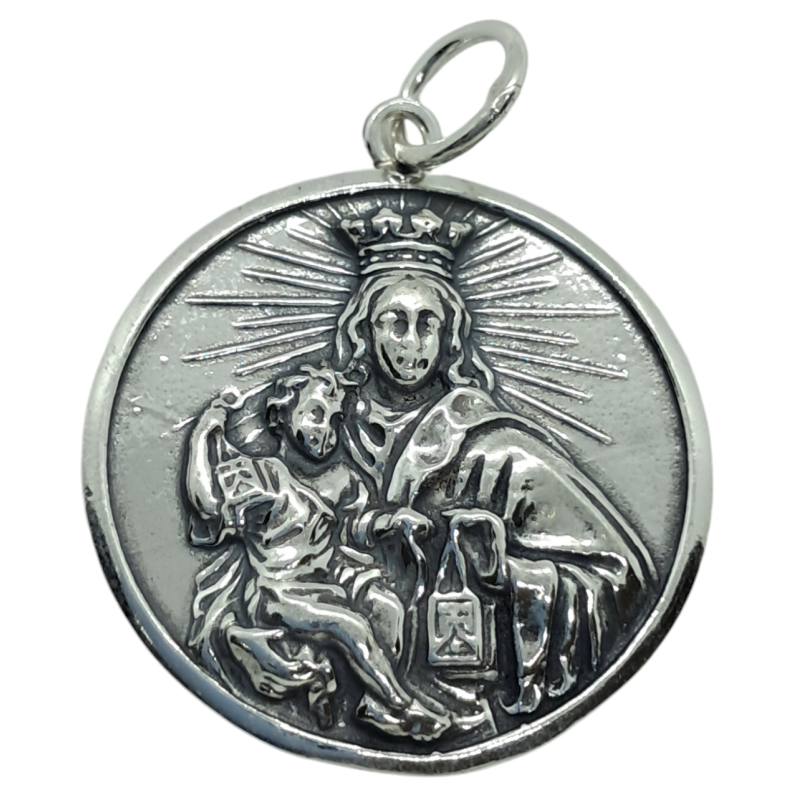 Medalla Escapulario redonda de plata de ley