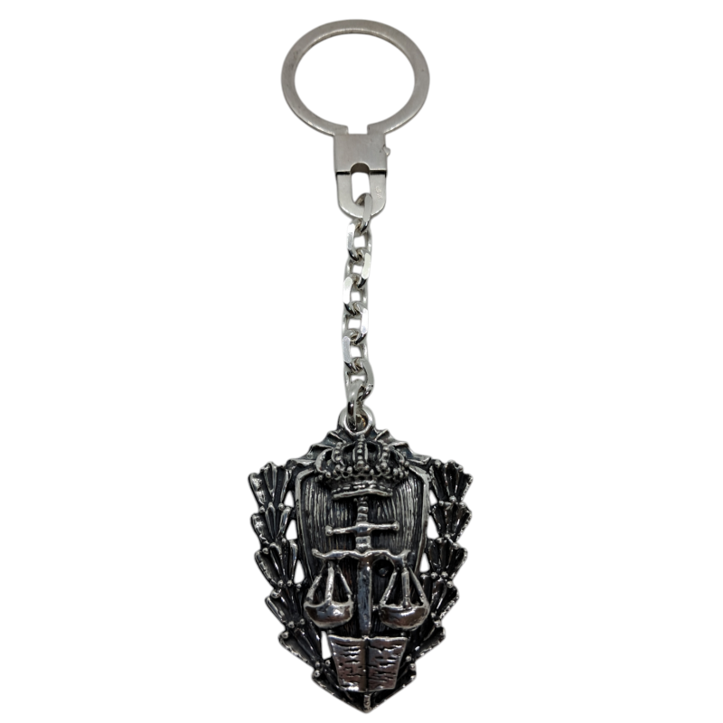 Llavero profesional Derecho de plata de ley de 925 mls con unas medidas aproximadas de 4x3 cm,.Parte trasera hueca, con posibilidad de realizar grabado