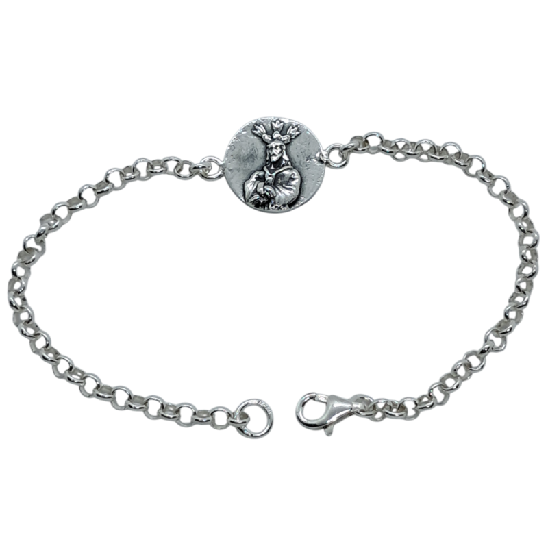 Pulsera Cautivo Rolo de plata de ley de 925 mls con unas medidas aproximadas de 19 cm.
