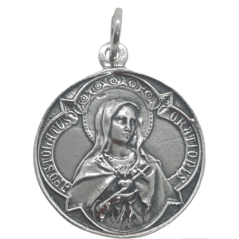 Medalla Escapulario redonda de plata de ley de 925 mls con unas medidas aproximadas de 28 mm .