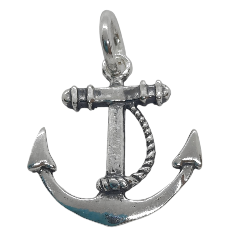 Colgante Ancla de plata de ley de 925 mls con unas medidas aproximadas de 1,7 x 1,9 cm.