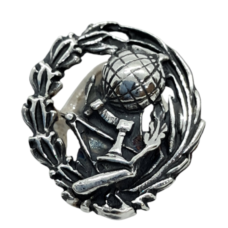 Insignia profesional Magisterio de plata de ley de 925 mls con unas medidas aproximadas de 18 mm.