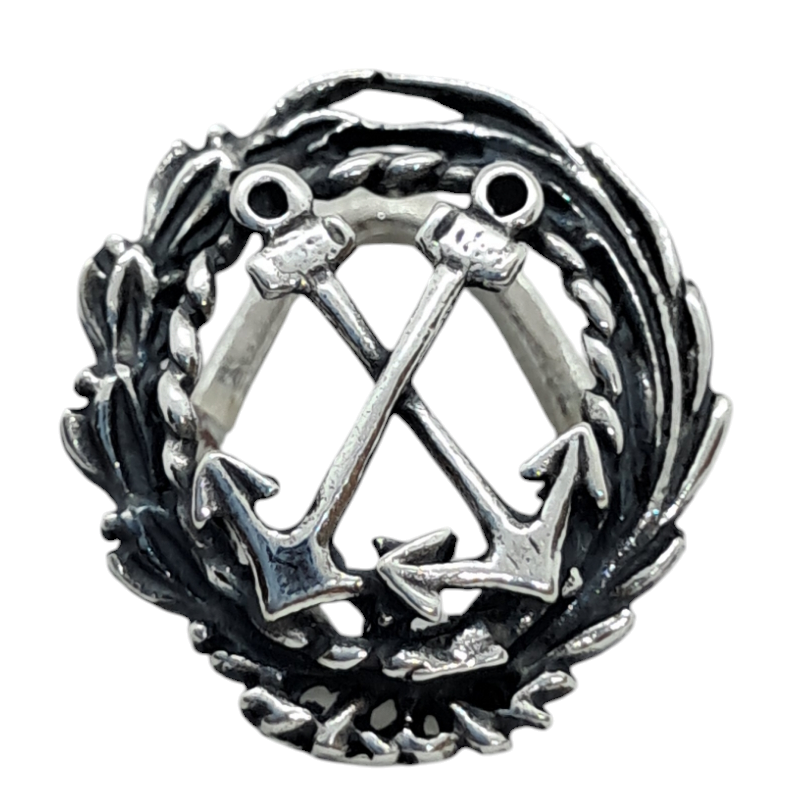 Insignia profesional Marina Mercante de plata de ley de 925 mls con unas medidas aproximadas de 18 mm.