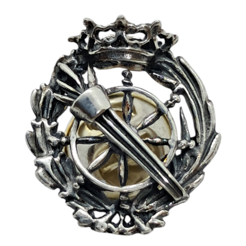 Insignia profesional Derecho de plata de ley de 925 mls con unas medidas aproximadas de 18 mm.