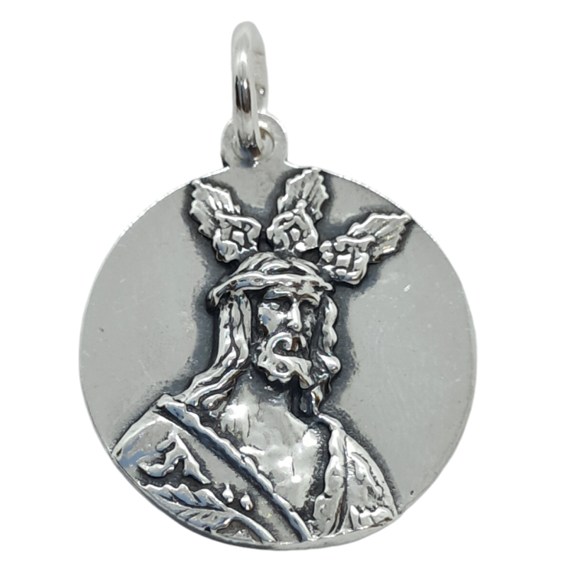 Medalla con imagen Sentencia en relieve de forma de plata de ley de 925 mls con unas medidas aproximadas de 22 mm.La parte trasera lisa