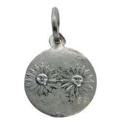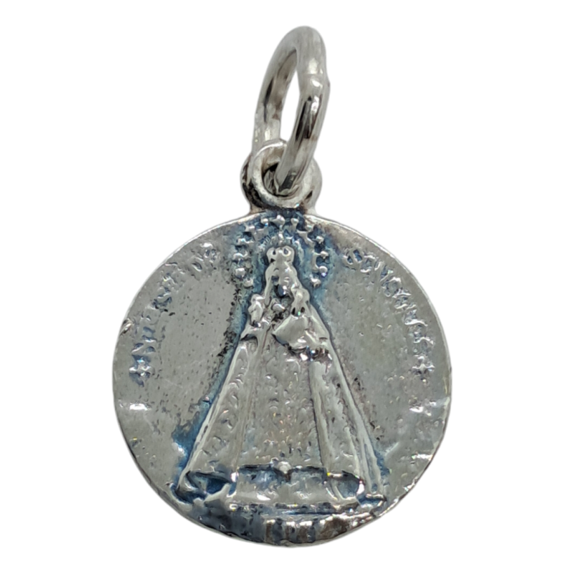 Medalla con imagen de Sonsoles en relieve de forma redonda de plata de ley de 925 mls con unas medidas aproximadas de 16 mm.Parte trasera soles grabados.
