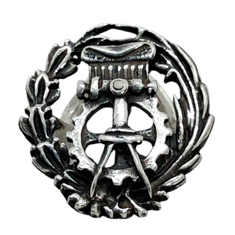 Insignia profesional Delineante de plata de ley de 925 mls con unas medidas aproximadas de 18 mm.