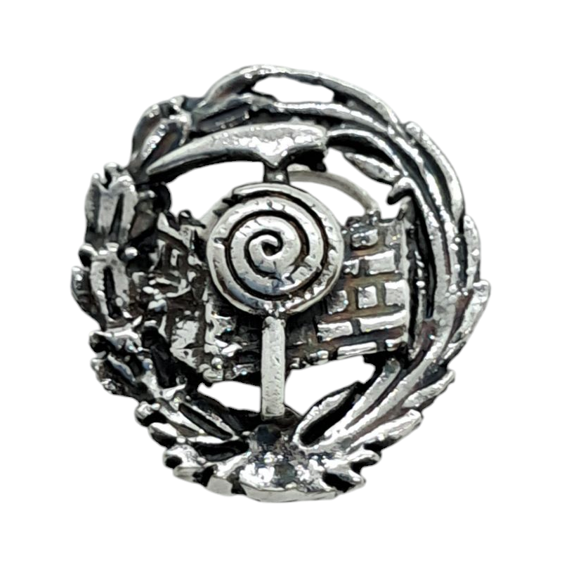Insignia profesional Geologicas de plata de ley de 925 mls con unas medidas aproximadas de 18 mm.