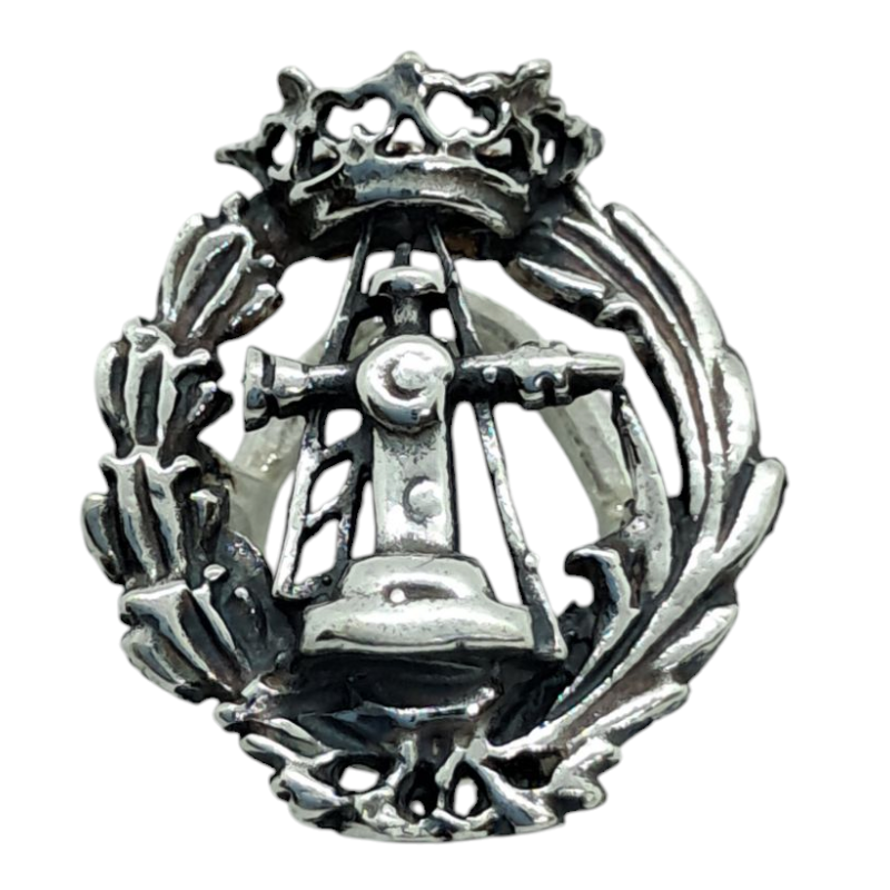 Insignia profesional Topografo de plata de ley de 925 mls con unas medidas aproximadas de 18 mm.